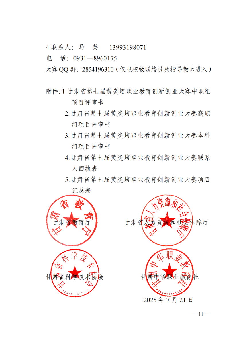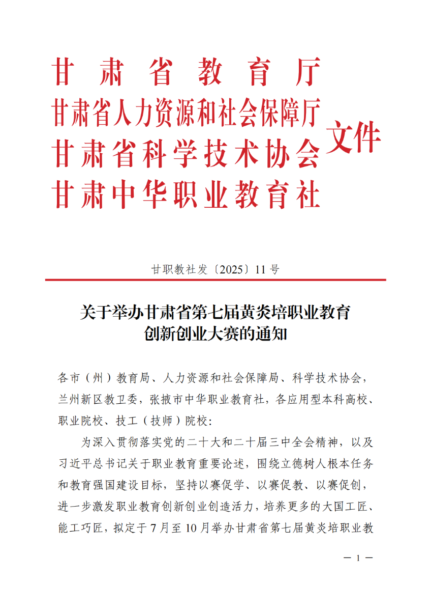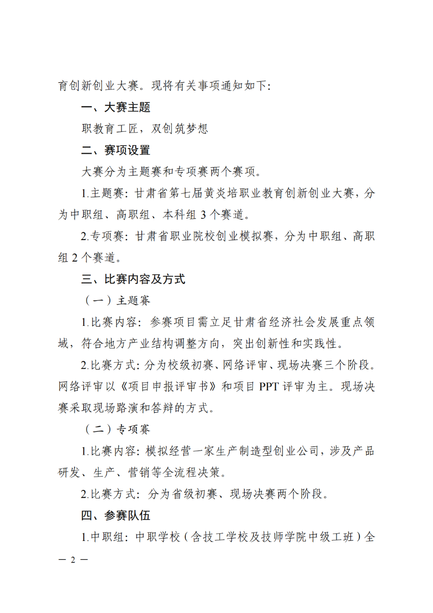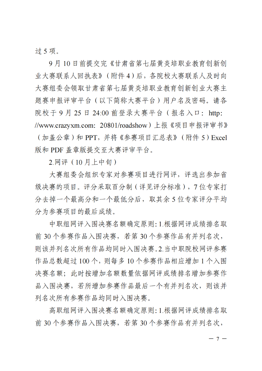关于举办甘肃省第七届黄炎培职业教育创新创业大赛的通知