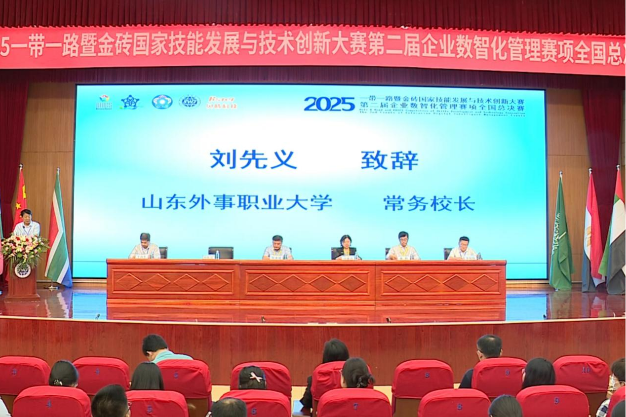 9月21日,2025一带一路暨金砖国家技能发展与技术创新大赛第二届企业数智化管理赛项全国总决赛在山东外事职业大学成功举办。本次大赛由金砖国家工商理事会中方理事会、一带一路暨金砖国家技能发展国际联盟、一带一路暨金砖国家技能发展与技术创新培训中心,中国发明协会、教育部中外人文交流中心联合主办,金砖国家工商理事会技能发展、应用技术与创新中方工作组承办,北京嘉克新兴科技有限公司、厦门市金砖未来技能发展与技术创新研究院、杭州贝腾科技有限公司、山东外事职业大学联合承办。