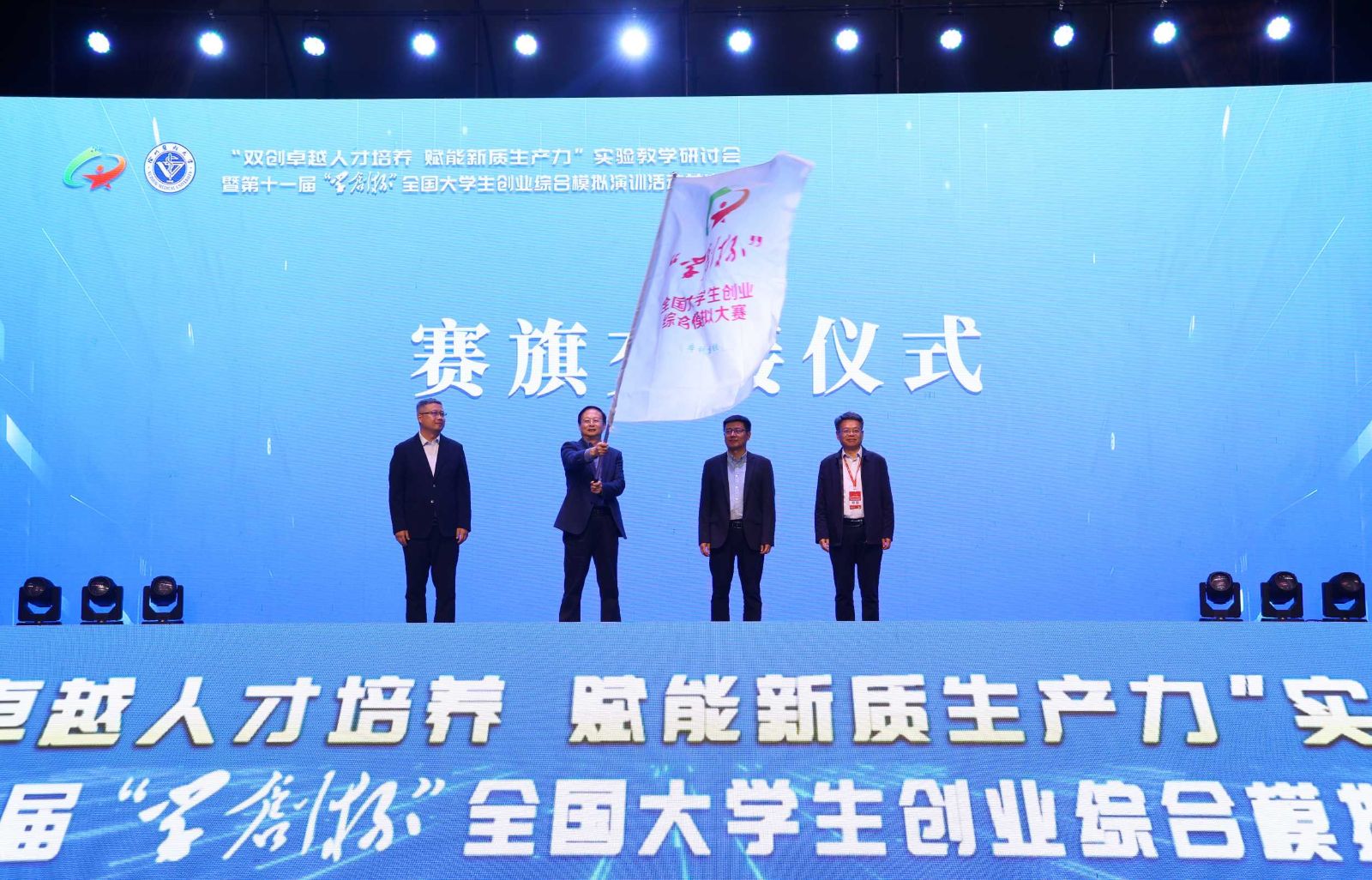 最后,承办院校徐州医科大学与下届承办单位成都理工大学(高教组)、威海职业学院(职教组)进行了赛旗交接。