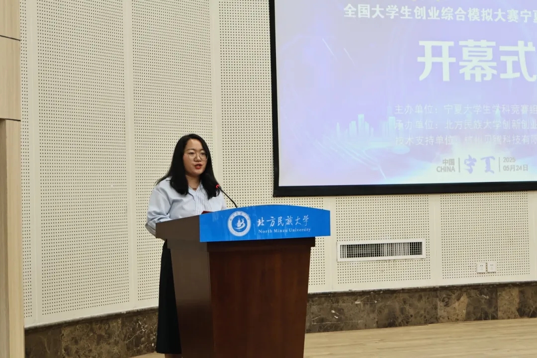 开幕式上,北方民族大学创新创业学院副院长李占斌代表承办方发表致辞。他指出,该项赛事致力于为青年学子构建集智慧交锋、技能展示、实践交流于一体的专业化舞台。通过模拟商业环境中的决策挑战,激发学生的创新思维与创业热情,提升其跨学科知识应用能力、团队协作效能与临场应变水平。