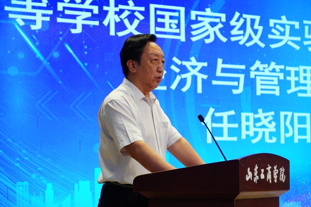 高等学校国家级实验教学示范中心联席会经济与管理学科组副组长任晓阳,国家级实验教学示范中心联席会经济与管理学科组秘书杨海军,杭州贝腾科技有限公司董事长黄林出席活动。山东工商学院党委委员、副院长贾海宁出席开幕式并讲话。