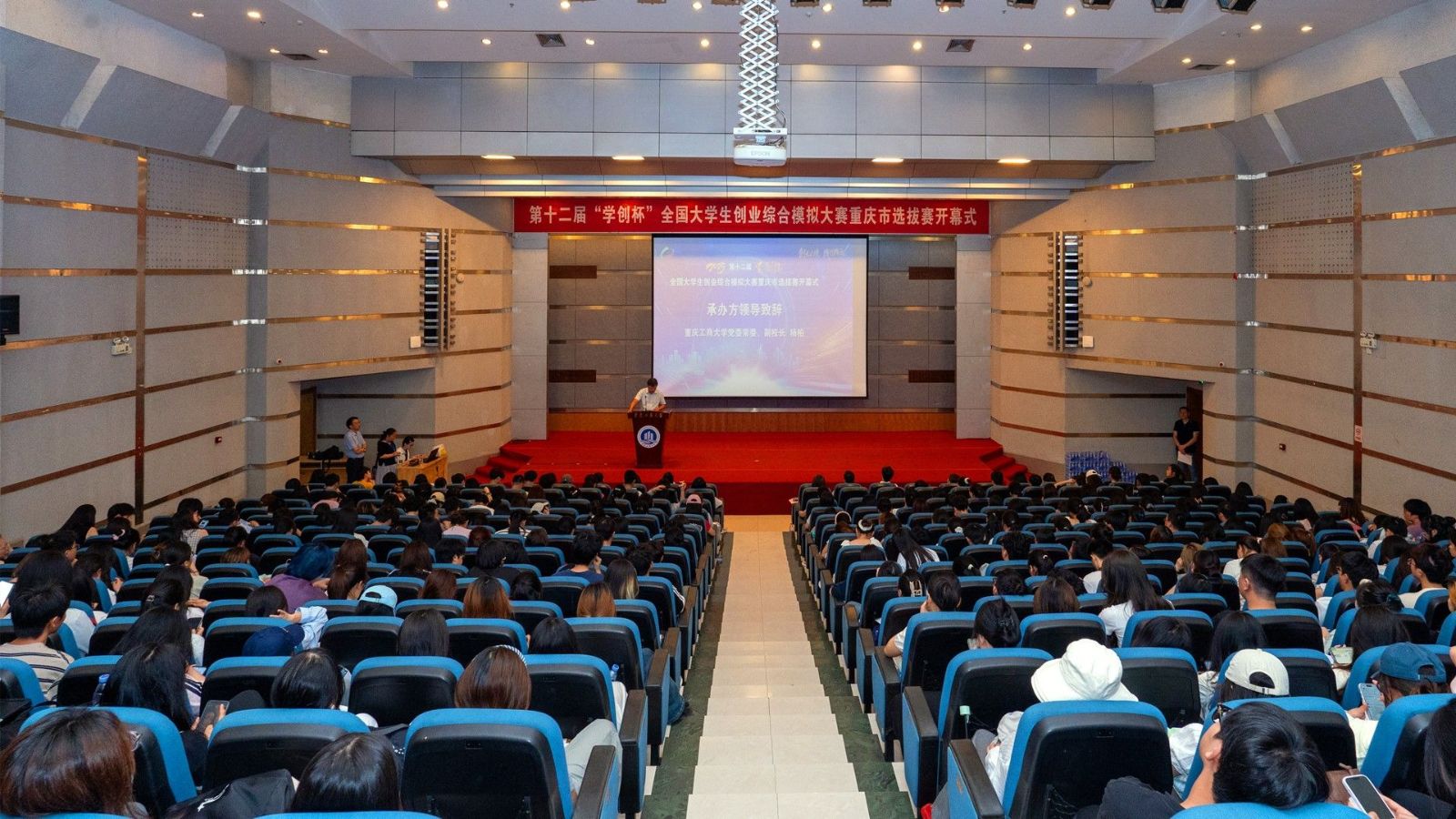 重庆市教委高教处副处长哈宁武代表大赛主办方上台致辞,对大赛承办单位和技术支持单位表示感谢,并祝愿各参赛团队享受比赛,收获友谊,赛出成绩。他强调,“学创杯”全国大学生创业综合模拟大赛对于培养学生创新精神、创业意识和创业能力具有重要意义,旨在加强市内各高校的交流与学习,为大学生提供一个展示自我、锻炼能力的平台。他希望,各参赛高校以此次大赛为契机,进一步实现跨学科、跨专业、跨院校创新创业教育示范与辐射,培养更多优秀的创新创业人才。