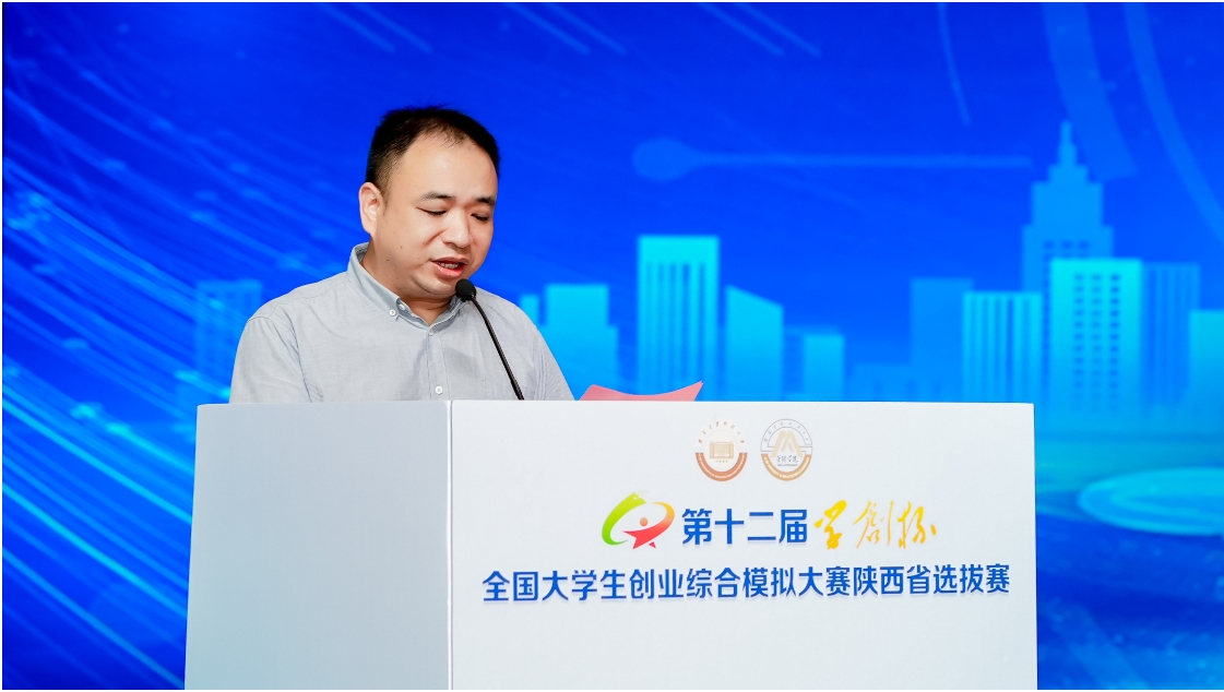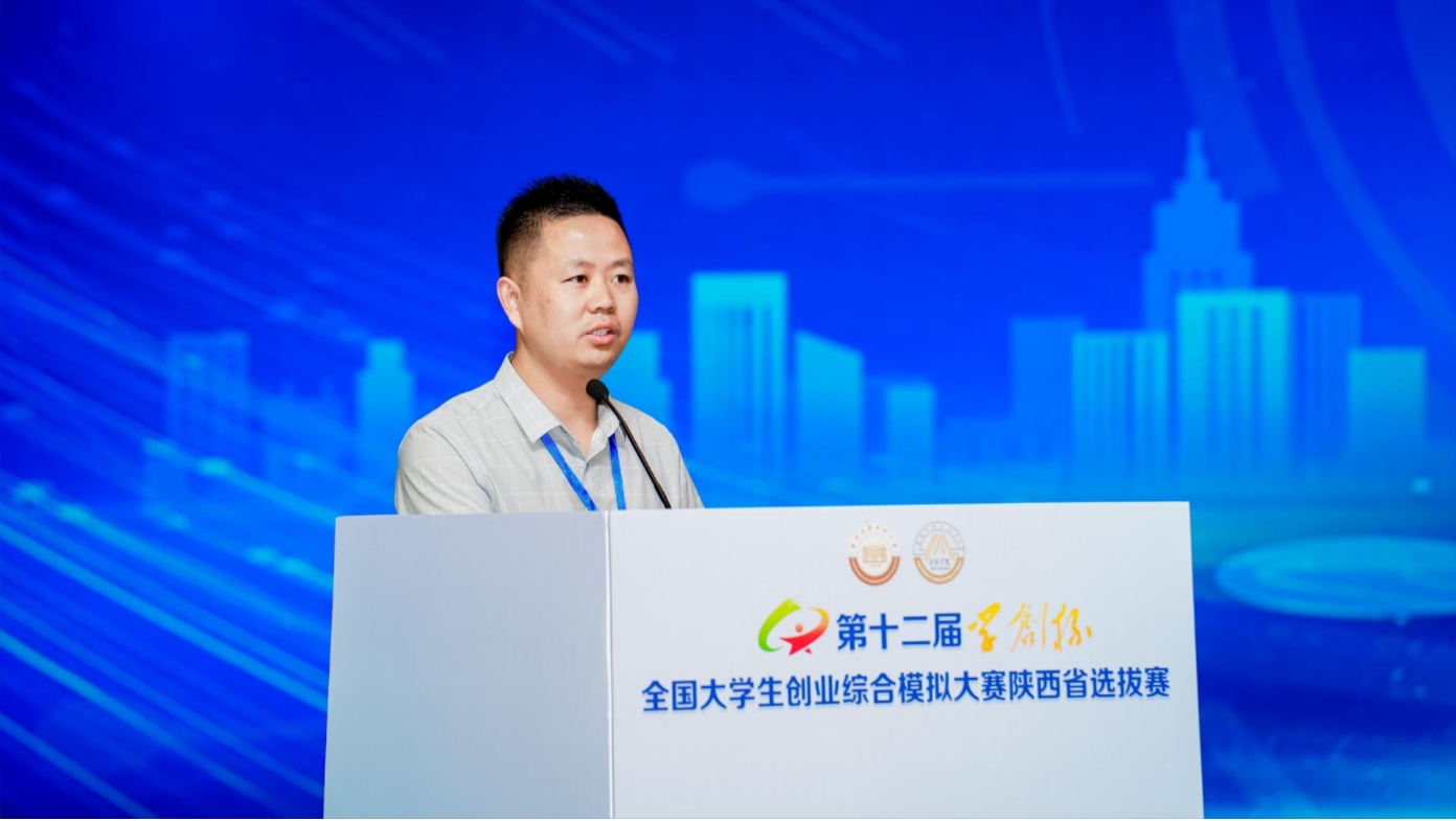 安康学院经管学院副院长袁合涛出席并发表讲话。他从多年投身创新创业教育与实践指导的经验出发,强调了大赛对学生综合素质提升及未来职业发展的深远意义,鼓励学子们以开放的思维、无畏的勇气,在赛事中大胆实践,将专业知识与创新创意深度融合,为创业梦想积蓄能量,赢得现场阵阵掌声。