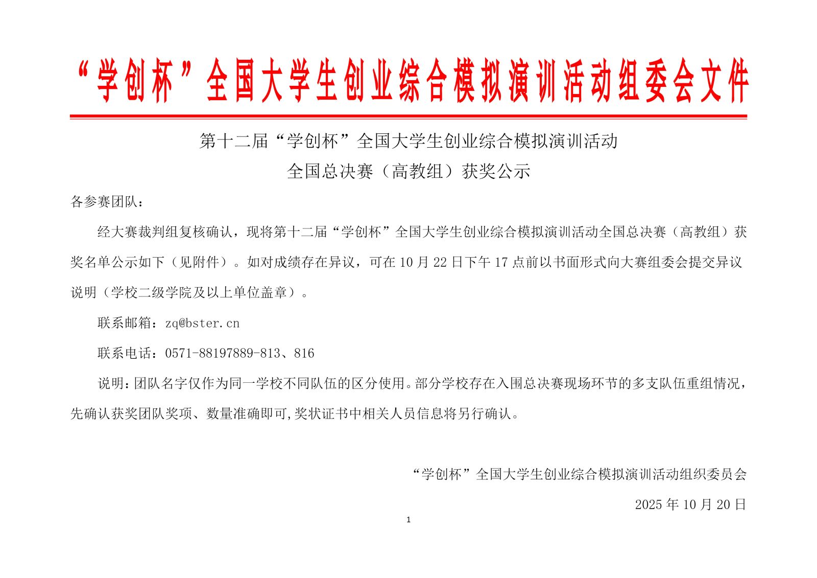 第十二届“学创杯”全国大学生创业综合模拟演训活动全国总决赛(高教组)获奖公示附件链接