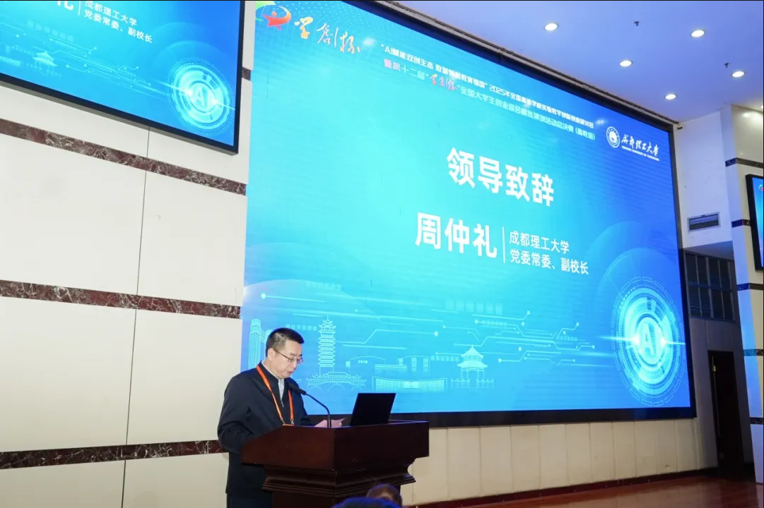 成都理工大学副校长周仲礼代表承办学校致欢迎辞,指出在国家推动高质量发展的关键时期,培养具备创新思维与实践能力的人才是高等教育的重要使命,并勉励学子赛出水平、拓宽视野。
