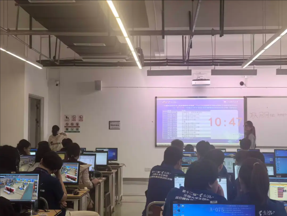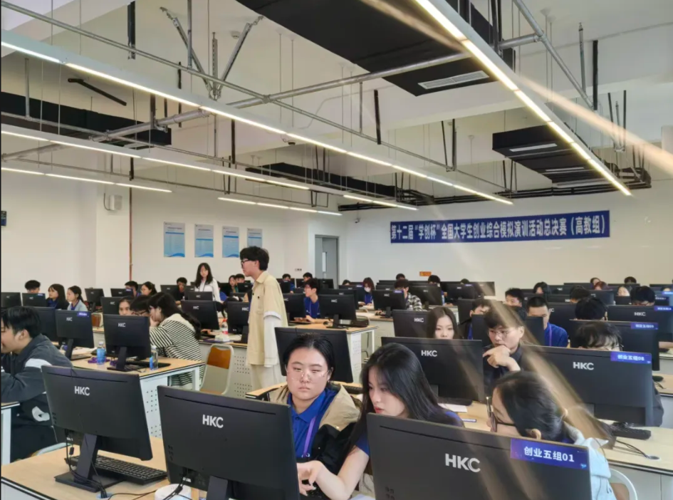 开幕式后,创业综合模拟赛项、数字营销模拟赛项与财务决策模拟赛项,三大赛项在综合实验大楼同步展开角逐。
