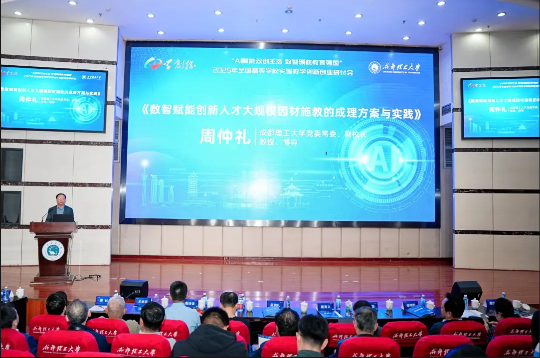 成都理工大学副校长周仲礼教授围绕《数智赋能创新人才大规模因材施教的成理方案与实践》,探讨了数智技术破解因材施教难题的价值,介绍了学校实践路径与阶段性成果。
