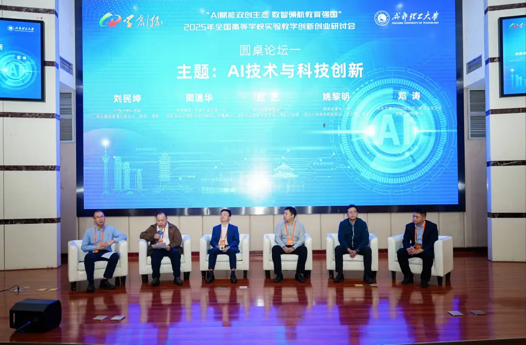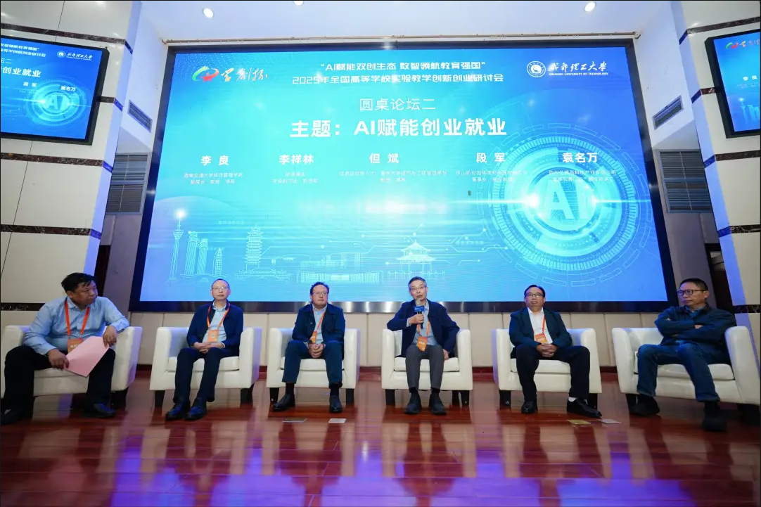 同期举办了“AI 赋能双创生态,数智领航教育强国”全国高等学校创新创业实验教学研讨会设有主旨报告与圆桌论坛。