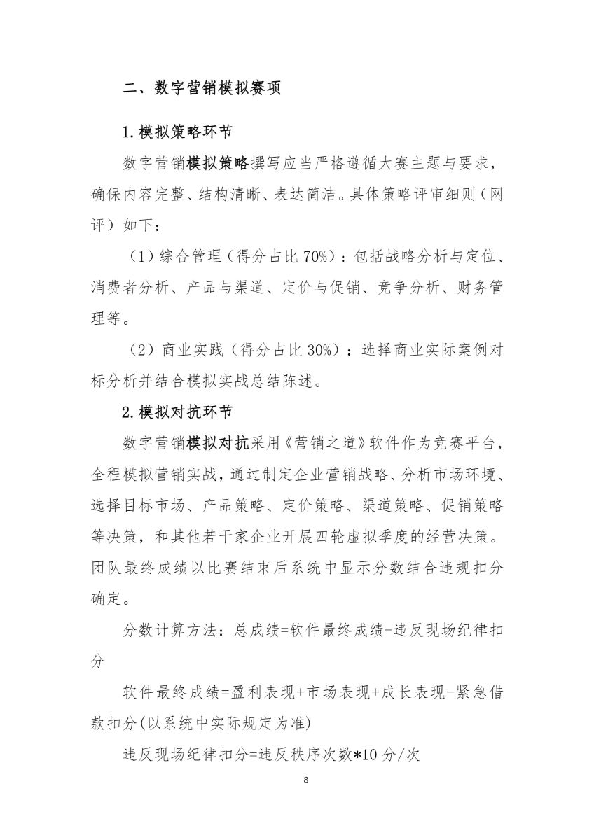 学创杯数字营销模拟赛项活动平台《营销之道》操作手册及数据规则