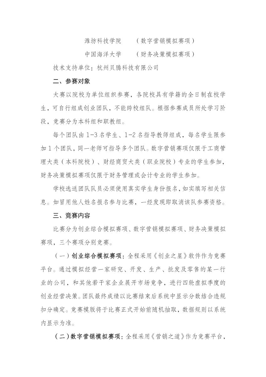 学创杯创业综合模拟赛项活动平台《创业之星》操作手册及数据规则