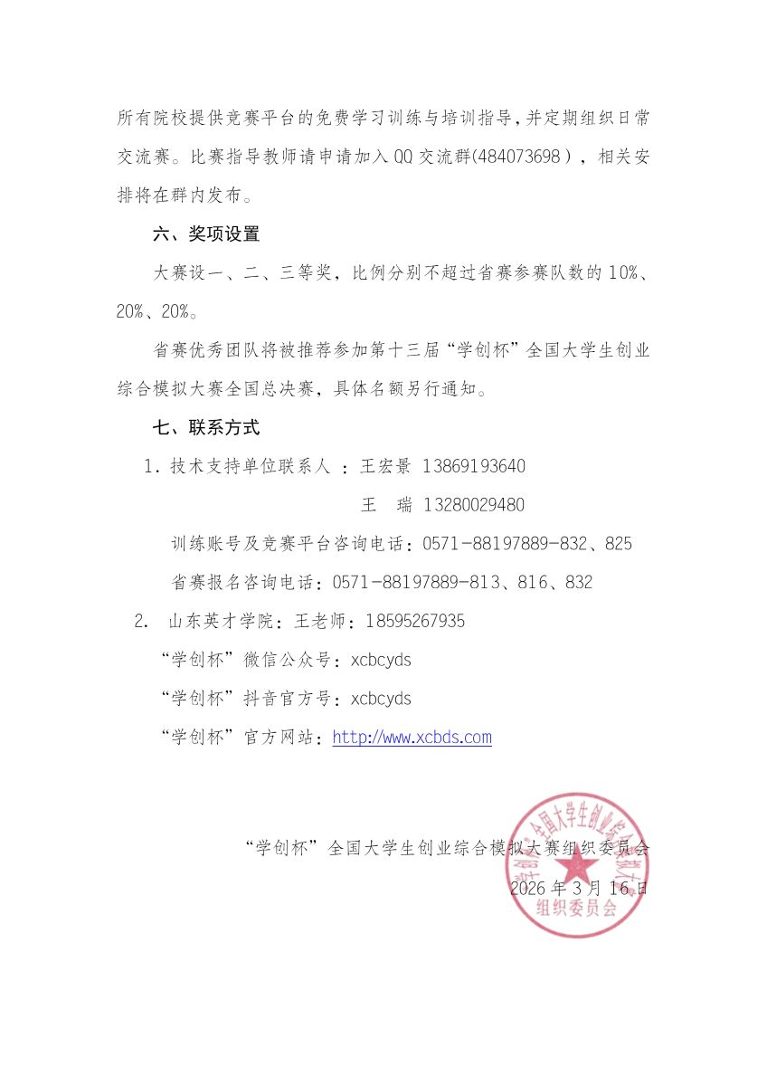 关于举办第十三届“学创杯”全国大学生创业综合模拟大赛山东省选拔赛的通知