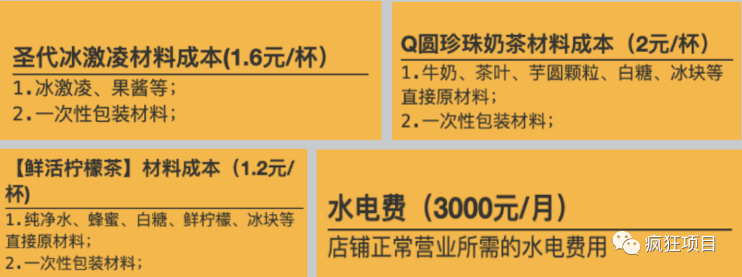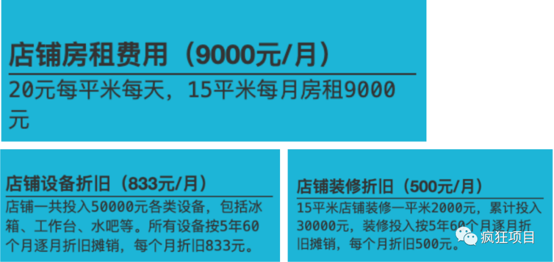 接下来,我们来简单梳理一下疯狂饮品店的各项主要成本费用构成。