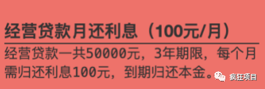这个听起来过于专业,我们举个例子,疯狂饮品店由于是大学生创业,创业起步资金并不是很充裕,正好所在城市又可以享受大学生创业低息贷款的政策,所以我们成功申请到了50000元低息贷款, 3年逐月支付利息,到期后一次性归还本金。