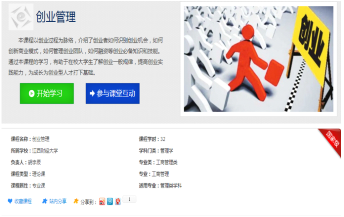 江西财经大学《创业管理》课程凭借卓越的教学质量与鲜明的课程特色,于 2016 年成功入选教育部首批 1700 余门国家级精品资源共享课,更是全国仅有的两门入选该名单的《创业管理》课程之一,彰显了其在高校创新创业教育领域的领先地位。该课程面向校内 3000 余名跨专业学生开设,始终坚持理论结合实践的教学理念,其中实践教学环节全程以贝腾科技《创业之星》实训平台为核心支撑,为学生打造了高度仿真的商业实践场景,有效提升了学生的创业实战能力,凭借优质的教学效果深受广大师生的一致欢迎与高度认可。