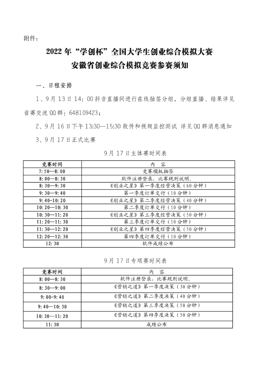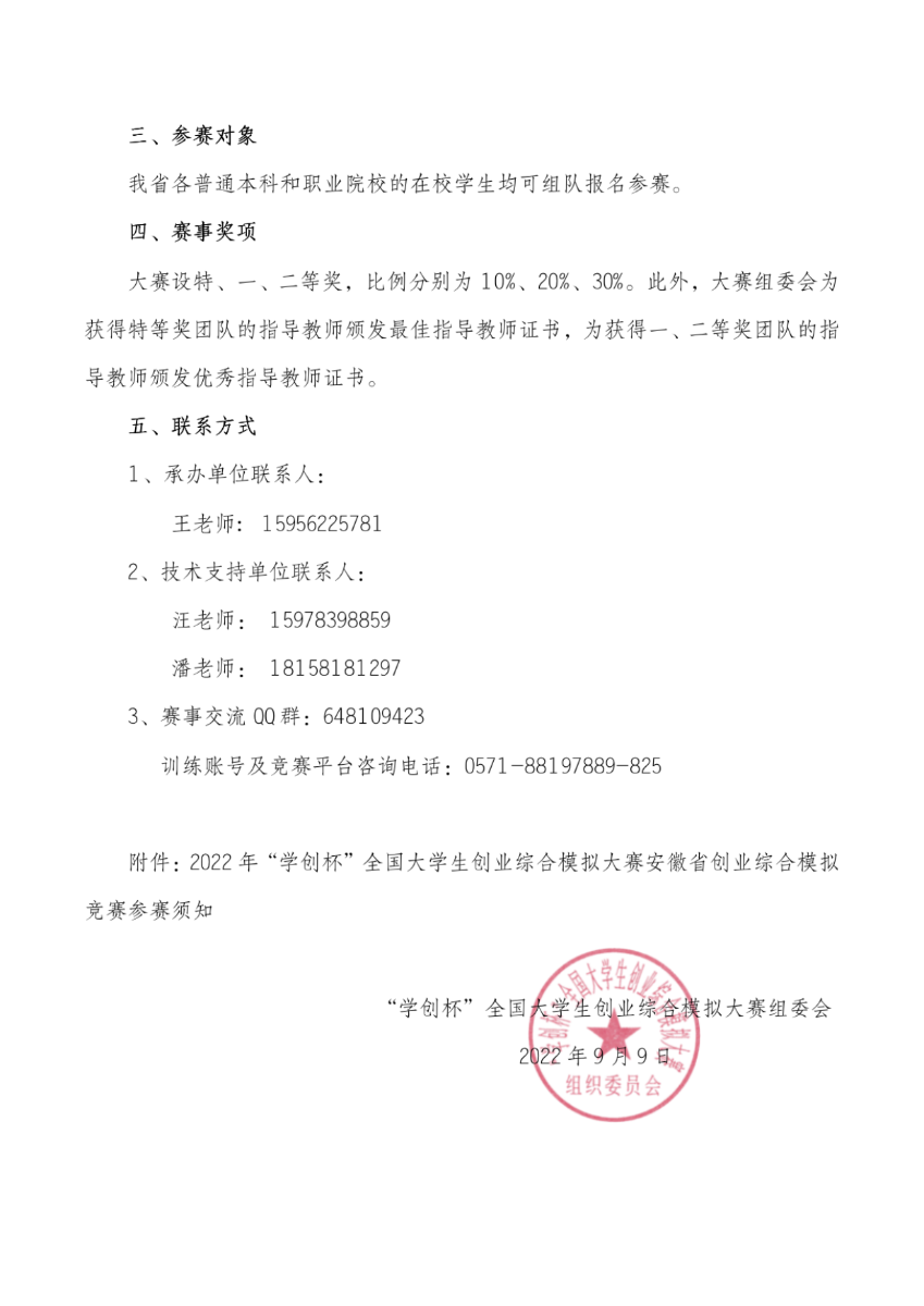 关于举办2022年“学创杯”全国大学生创业综合模拟 大赛安徽省选拔赛的通知(第三轮)