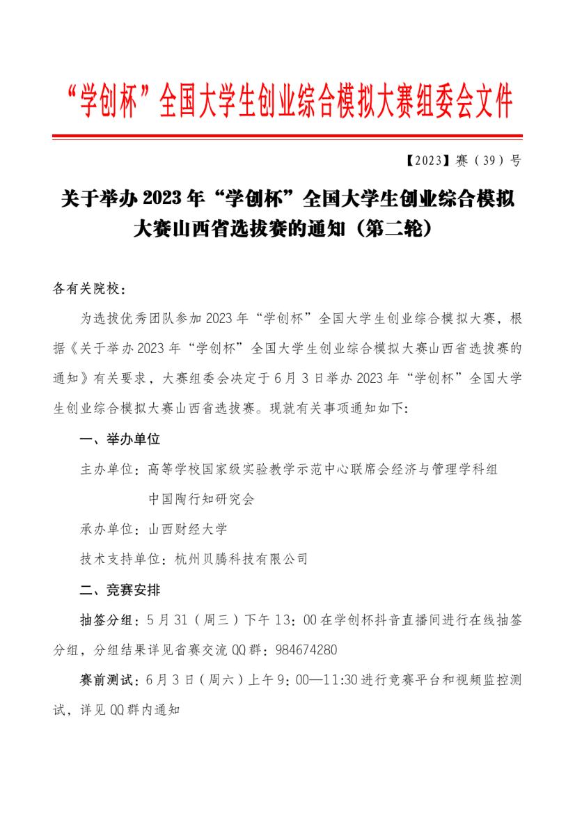 关于举办2023年“学创杯”全国大学生创业综合模拟大赛山西省选拔赛的通知(第二轮)