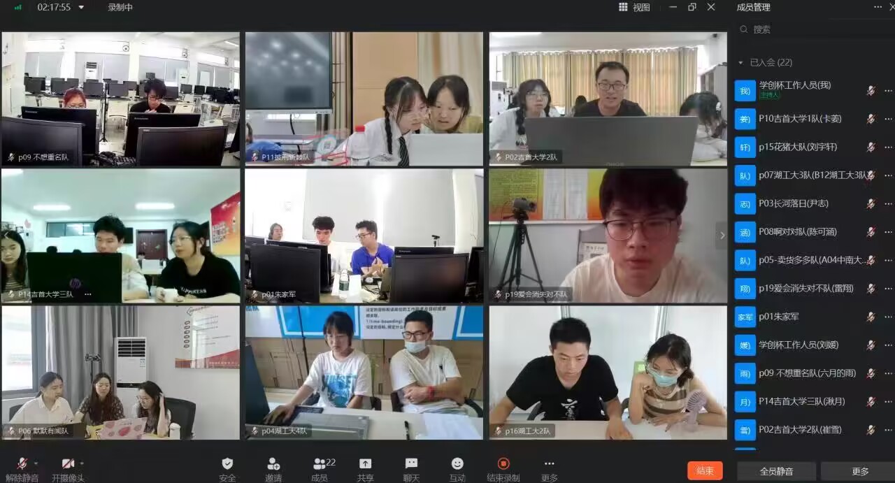 此次大赛全省共有45所高校266支团队参赛,本次比赛以网络竞赛的形式开展,采取裁判线上巡逻抽查制,在裁判组和监控组的指导下,对所有参赛团队进行了全程的视频监控录像,保证了线上赛事的公平公正。