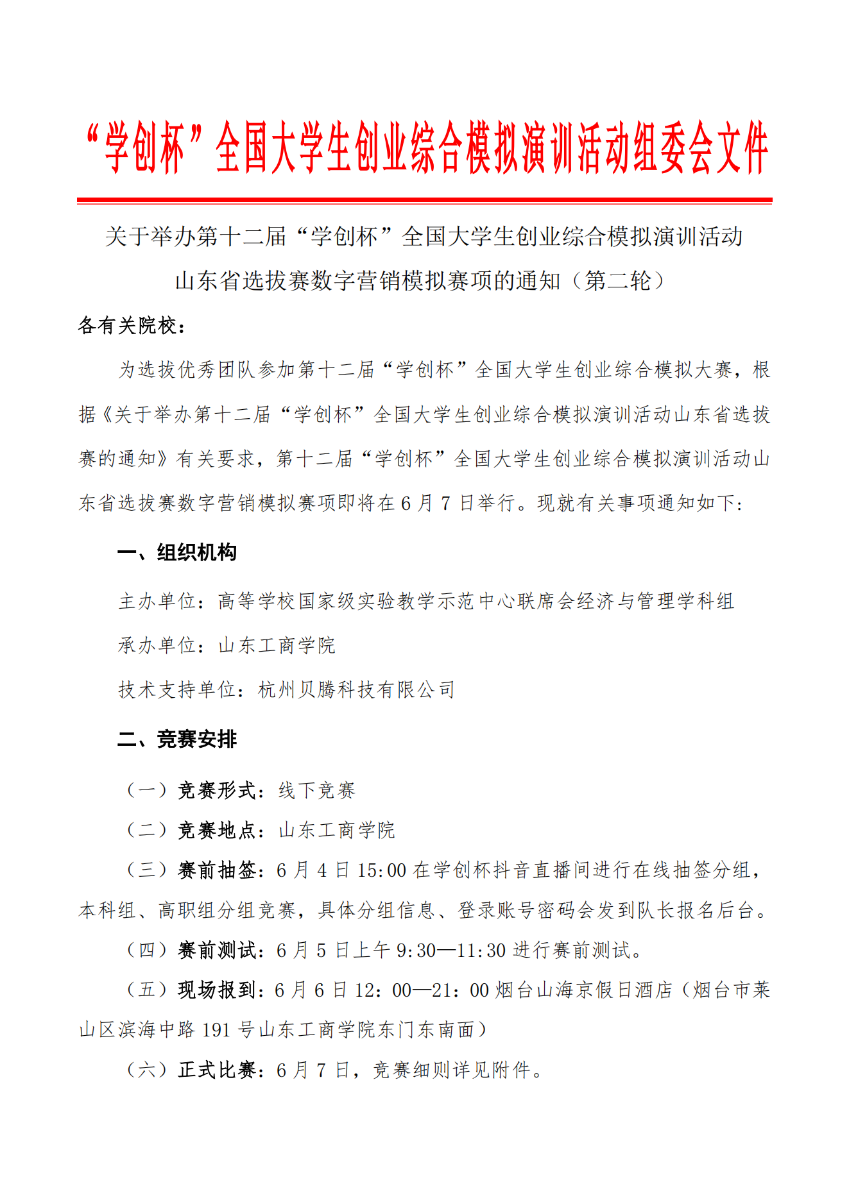 关于举办第十二届“学创杯”全国大学生创业综合模拟演训活动山东省选拔赛数字营销模拟赛项的通知(第二轮)