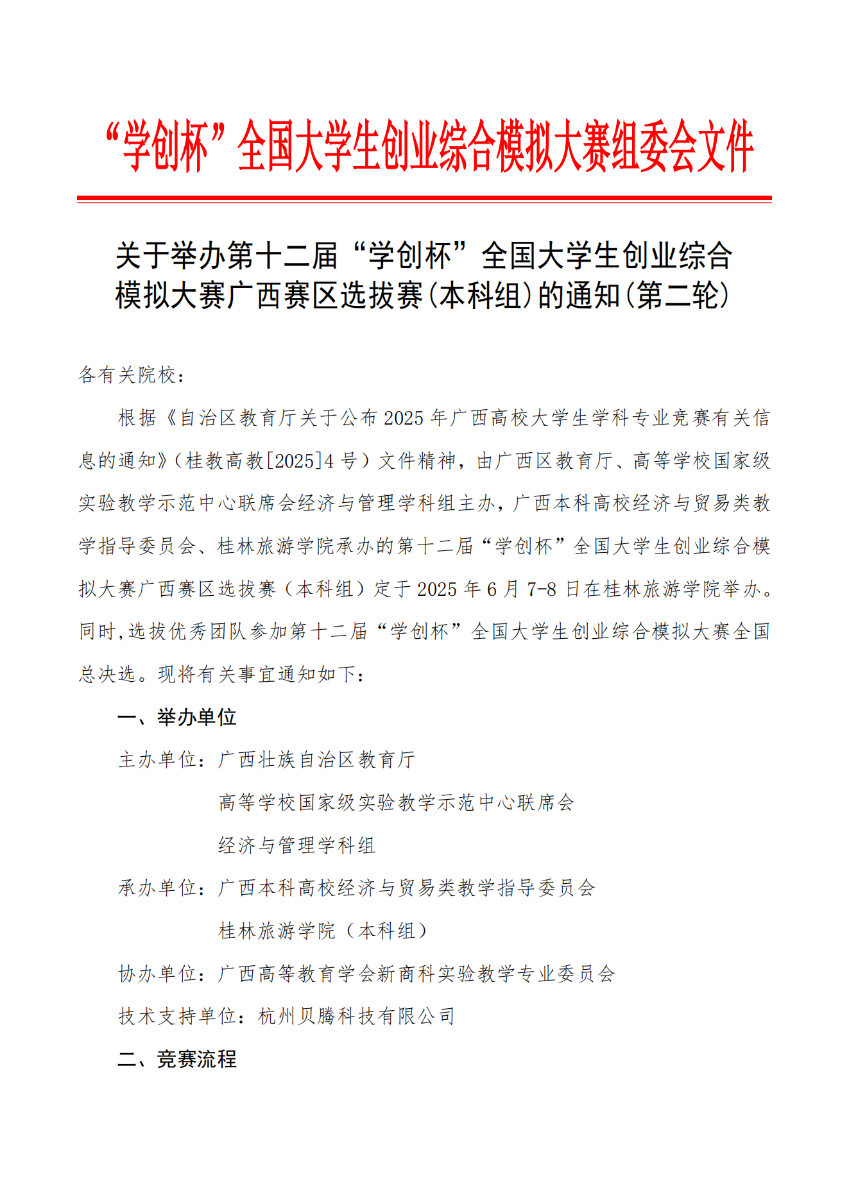 关于举办第十二届“学创杯”全国大学生创业综合模拟大赛广西赛区选拔赛(本科组)的通知(第二轮)