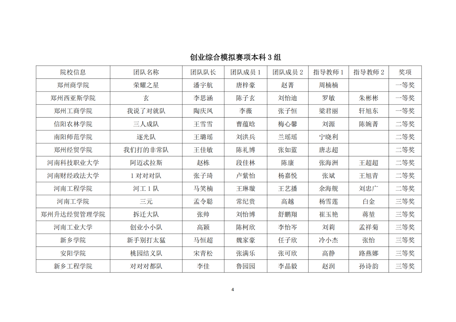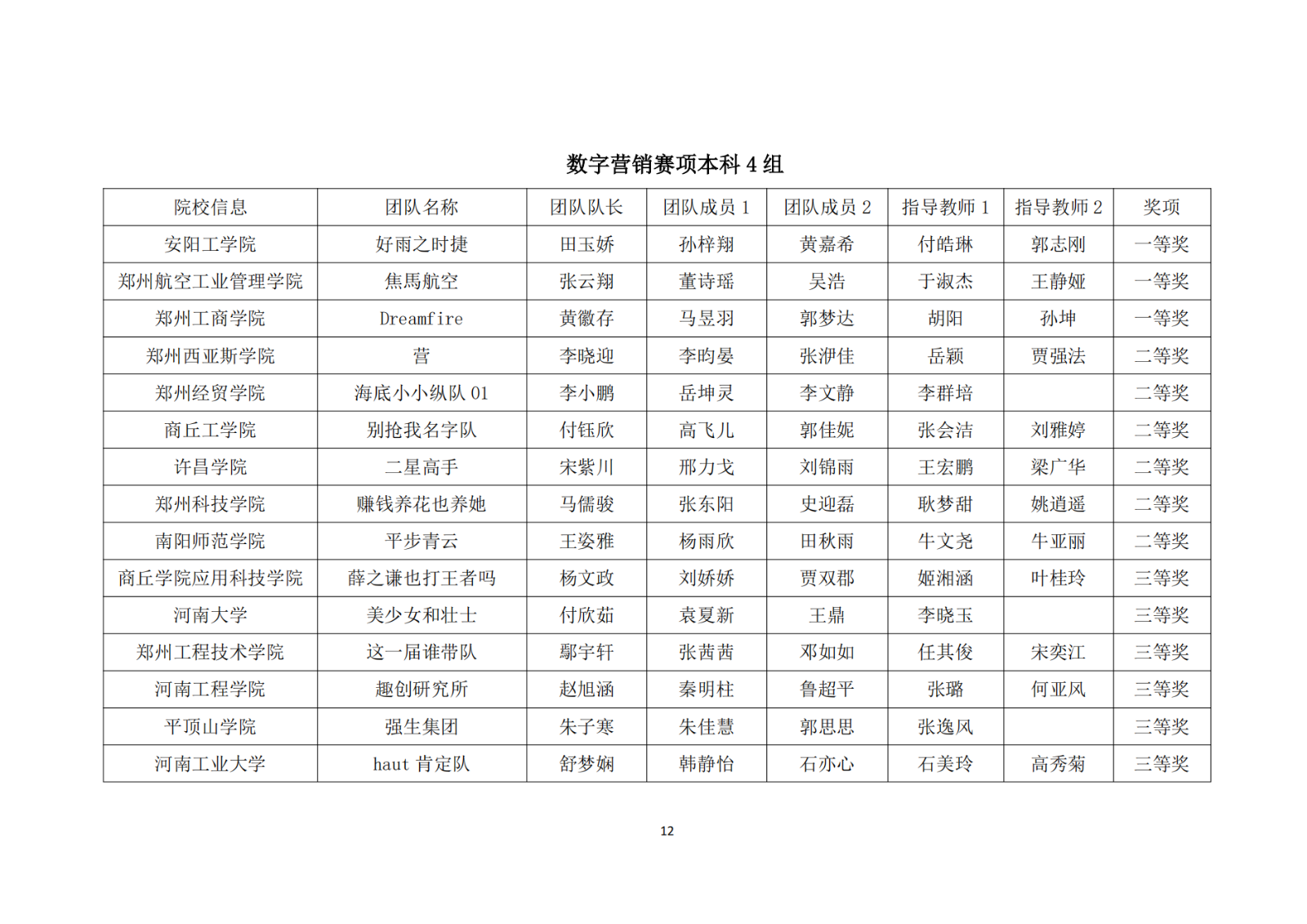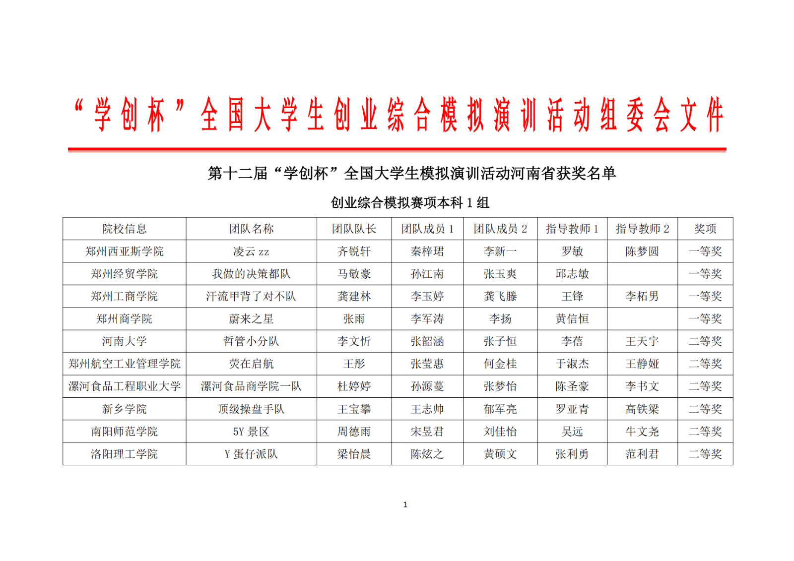 第十二届“学创杯”全国大学生模拟演训活动河南省获奖名单