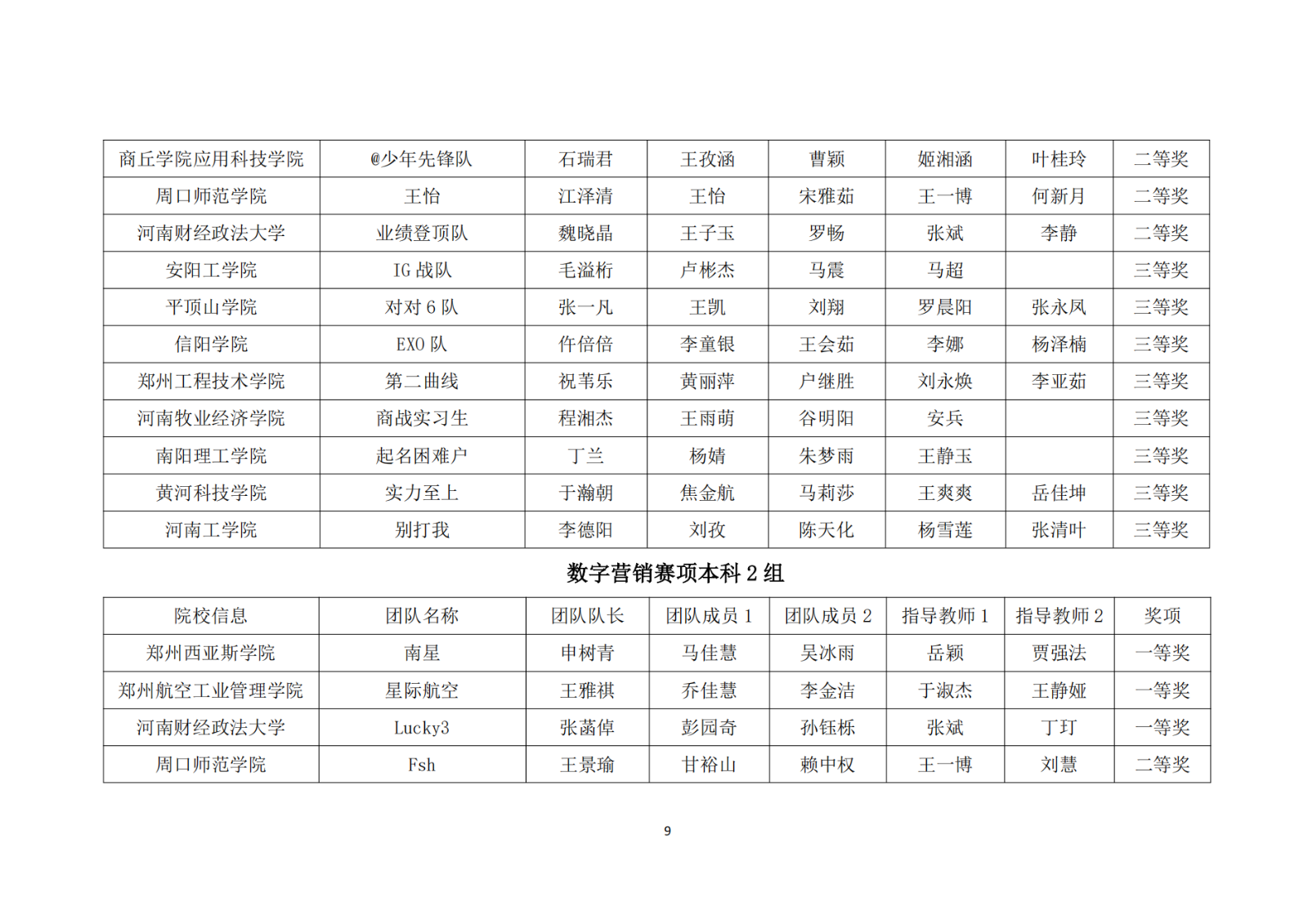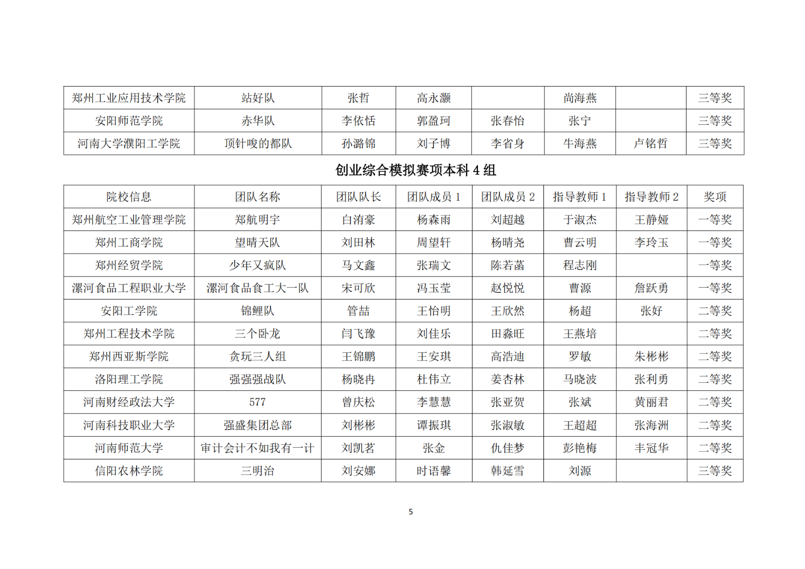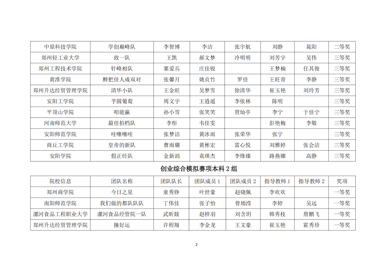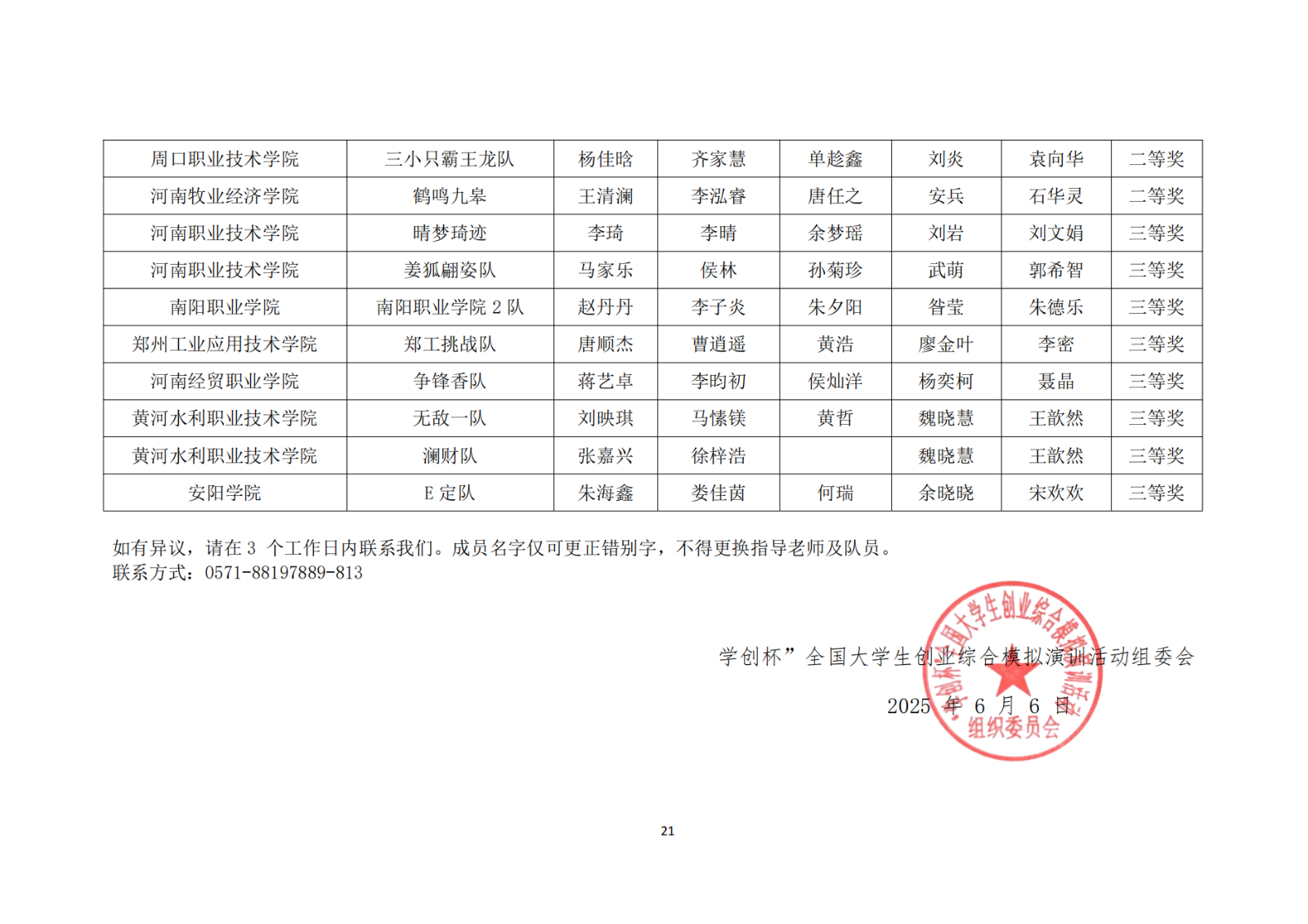 第十二届“学创杯”全国大学生模拟演训活动河南省获奖名单