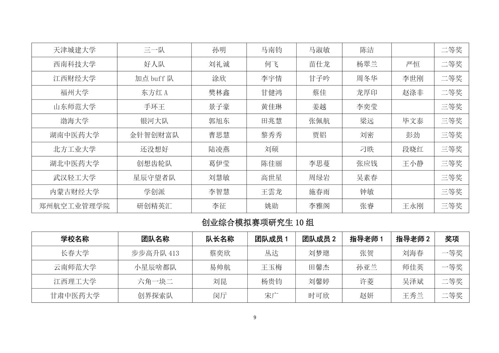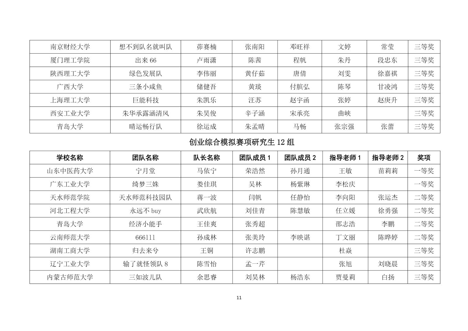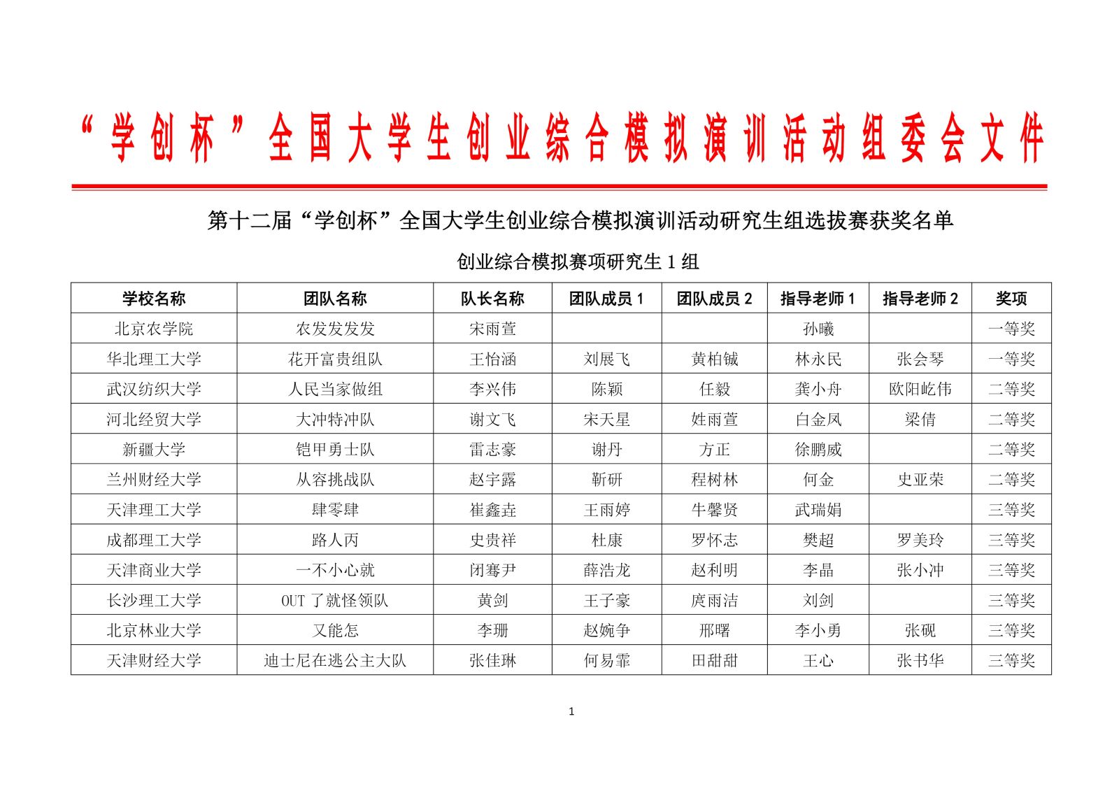 第十二届“学创杯”全国大学生创业综合模拟演训活动研究生组选拔赛获奖名单