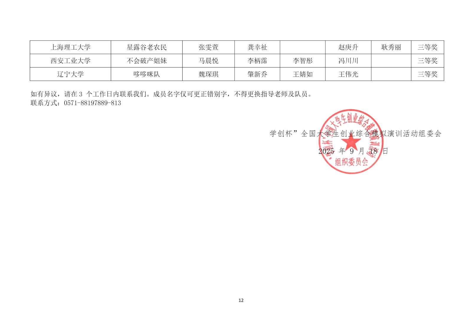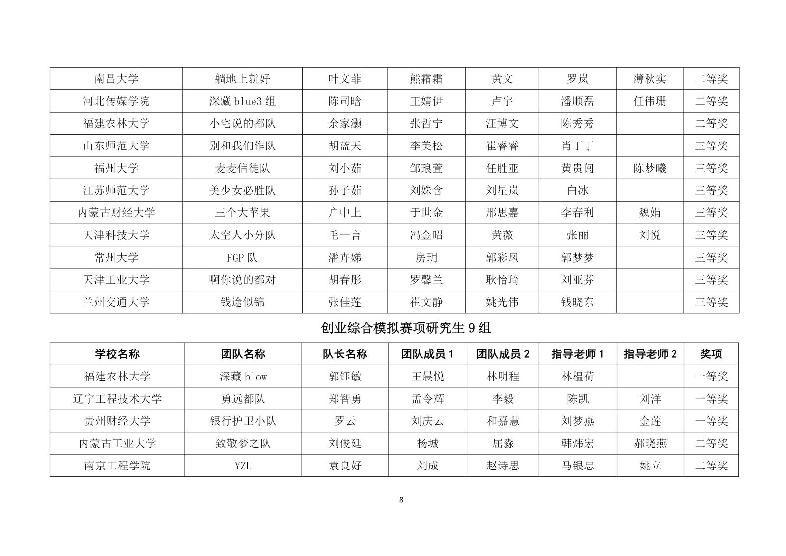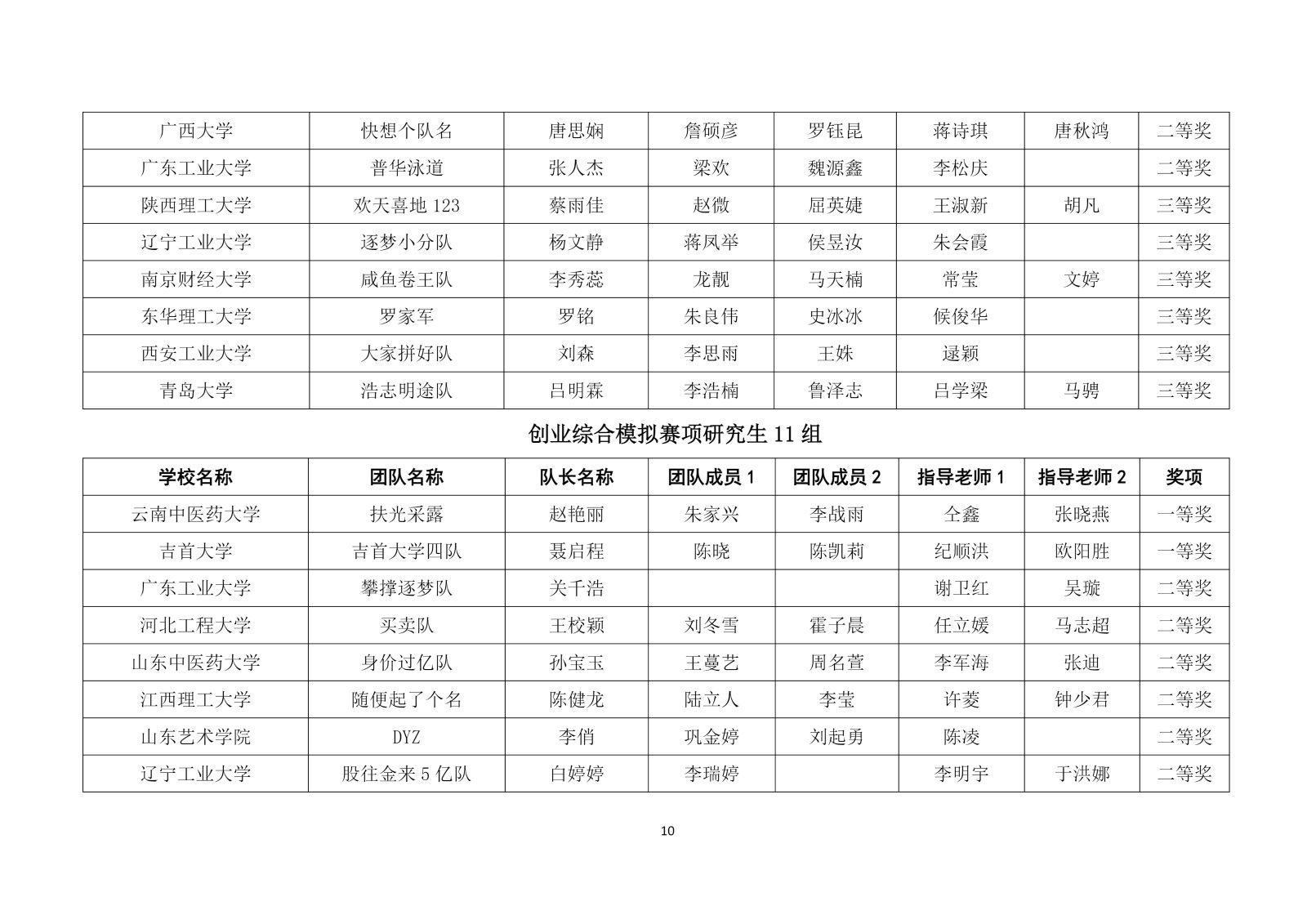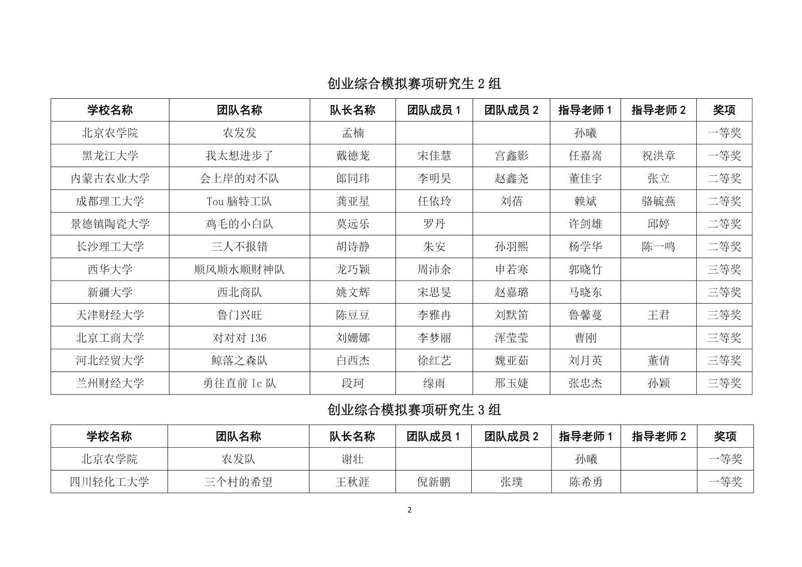 第十二届“学创杯”全国大学生创业综合模拟演训活动研究生组选拔赛获奖名单