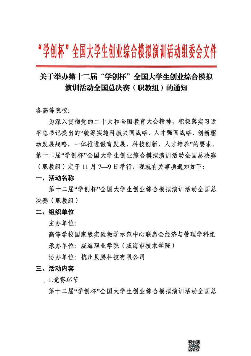 关于举办第十二届“学创杯”全国大学生创业综合模拟演训活动全国总决赛(职教组)的通知