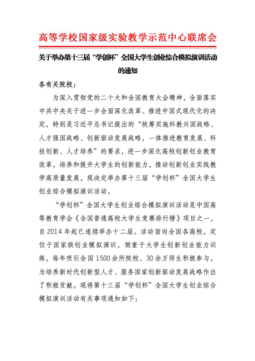 关于举办第十三届“学创杯’全国大学生创业综合模拟演训活动的通知