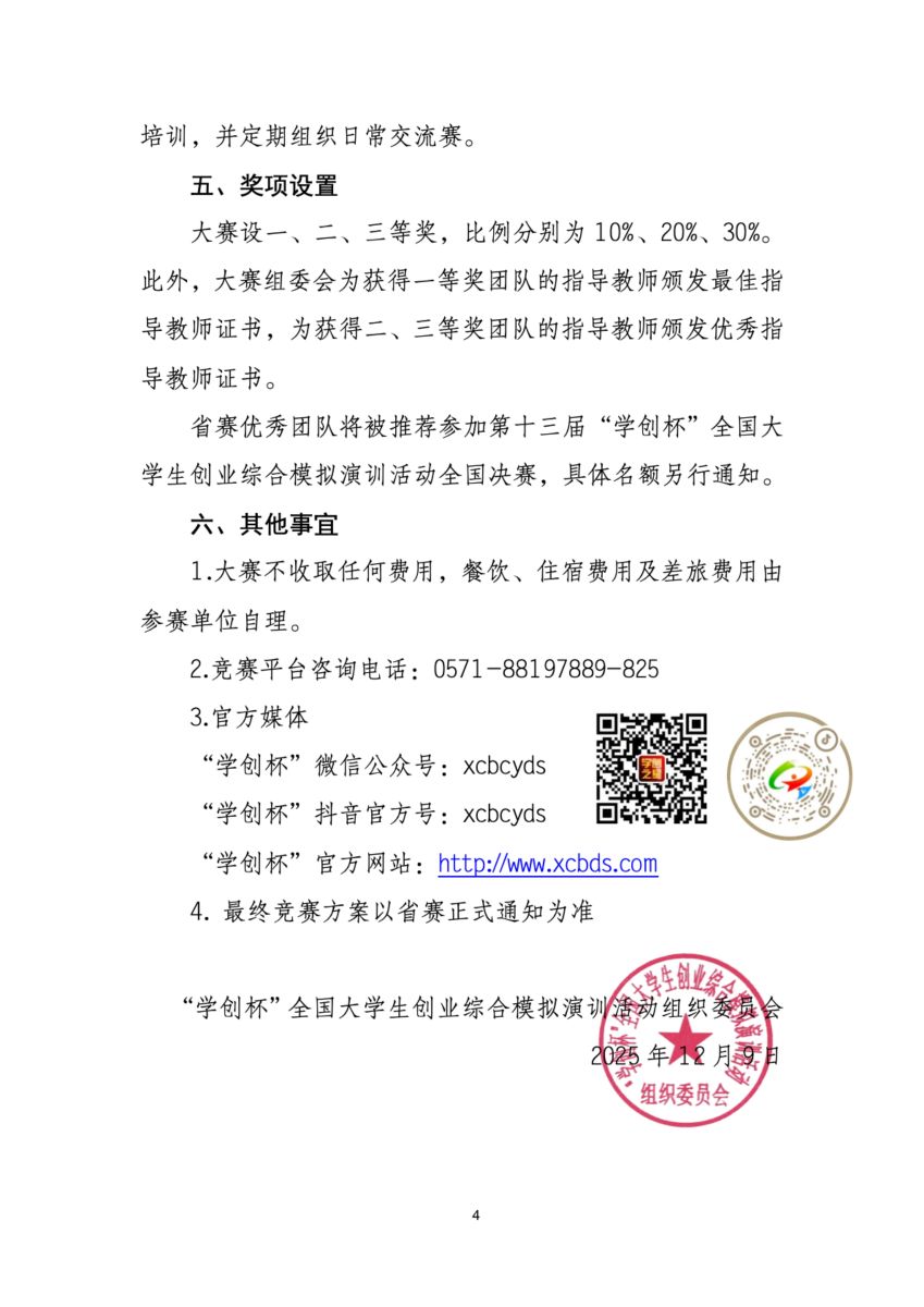 关于举办第十三届“学创杯”全国大学生创业综合模拟演训活动浙江省选拔赛的预通知
