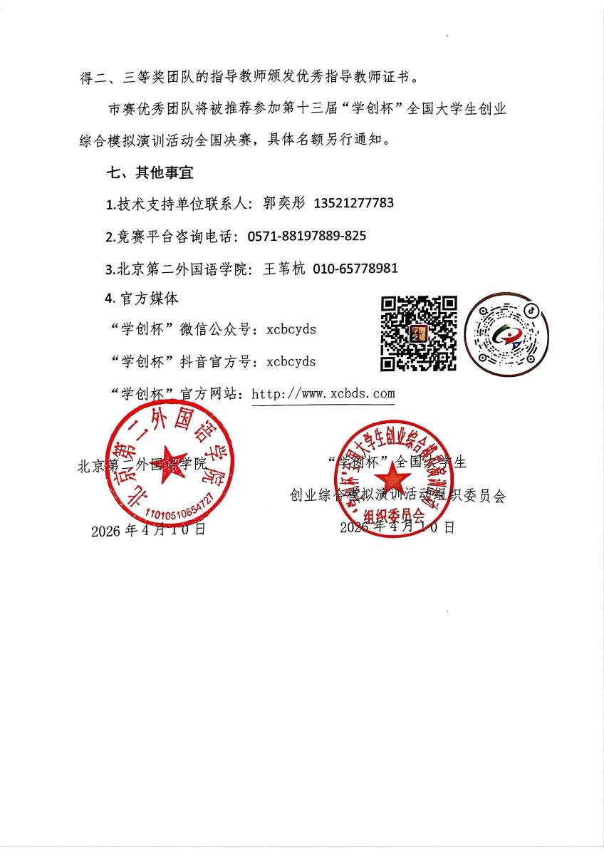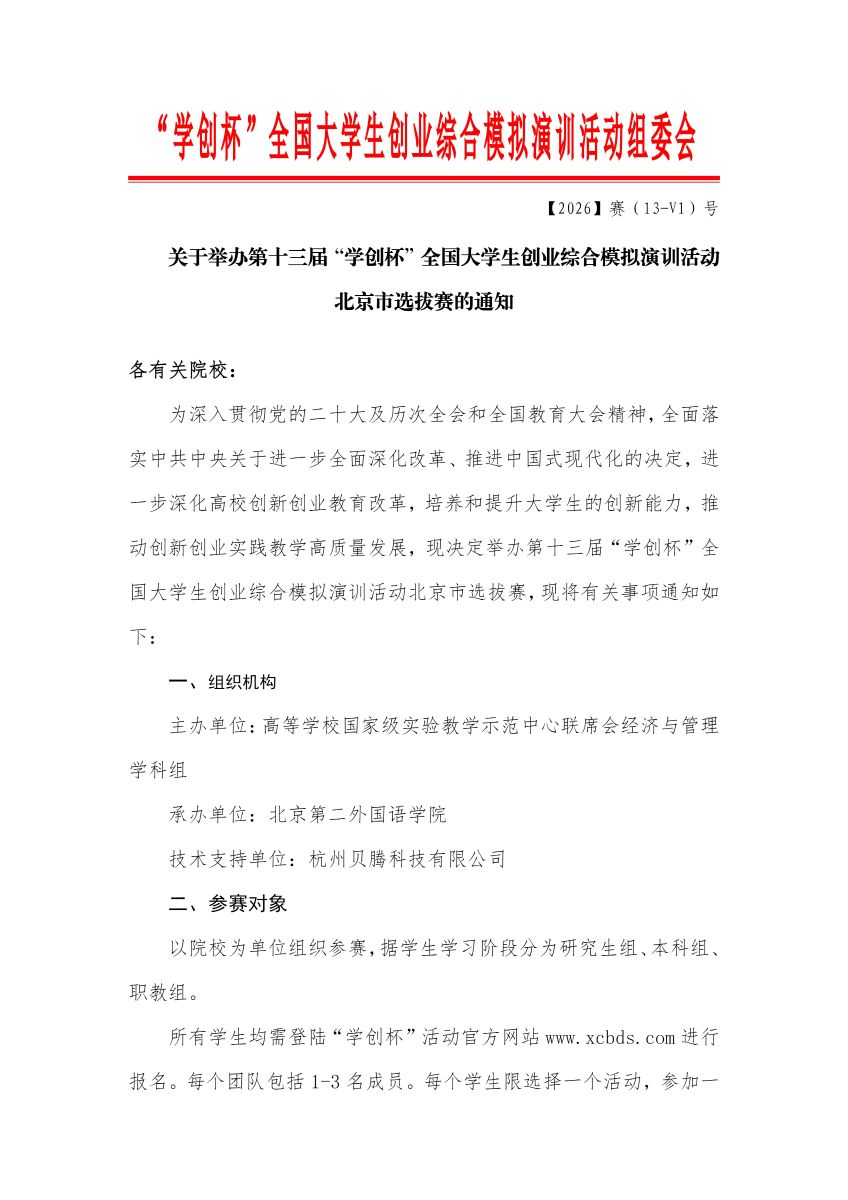 关于举办第十三届“学创杯”全国大学生创业综合模拟演训活动北京市选拔赛的通知