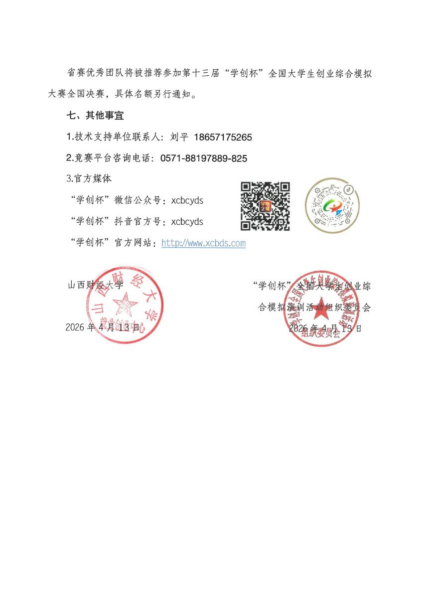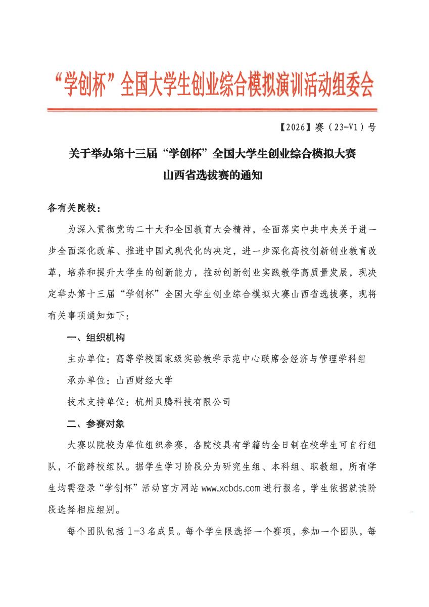 关于举办第十三届“学创杯”全国大学生创业综合模拟大赛山西省选拔赛的通知