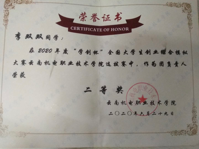 在6月29日的学院决赛中,186011班李双双作为沝溪团队负责人,带领队员汤储泽和赵富宏同学就策划案进行了讲解展示,经过激烈角逐,团队在学院第四届“学创杯”大赛中获得了二等奖。